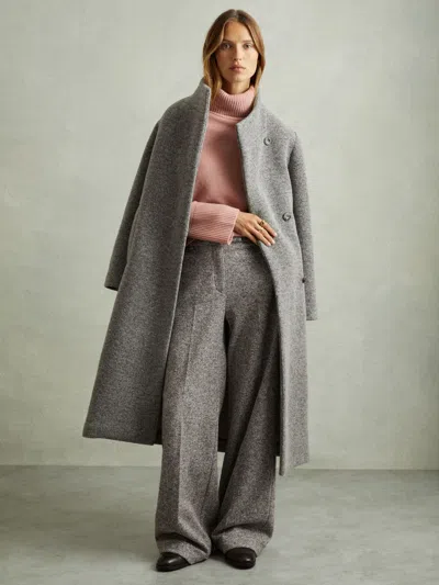 Grey Textured Wool Blend Wide Leg Suit Trousers In Gray