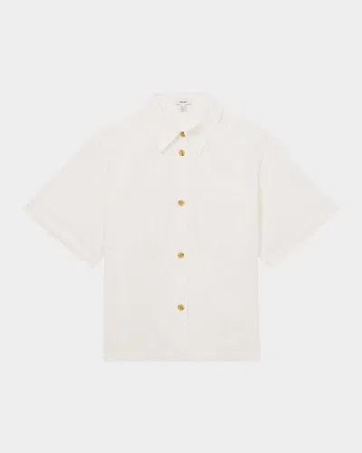 Womens White Relaxed-fit Short-sleeve Cropped Cotton Shirt