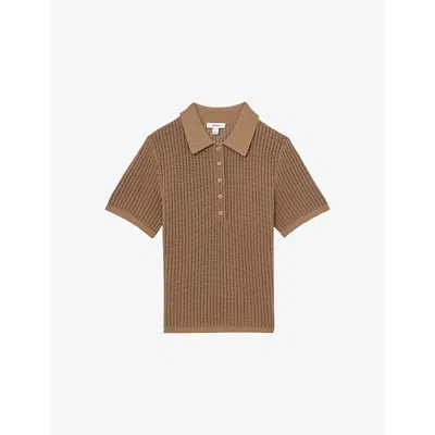 Womens Evi Open-knit Cotton-blend Polo Shirt Tan