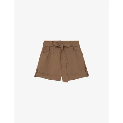 Womens Neutral Avril Belted-waist Regular-fit Woven Shorts In Brown