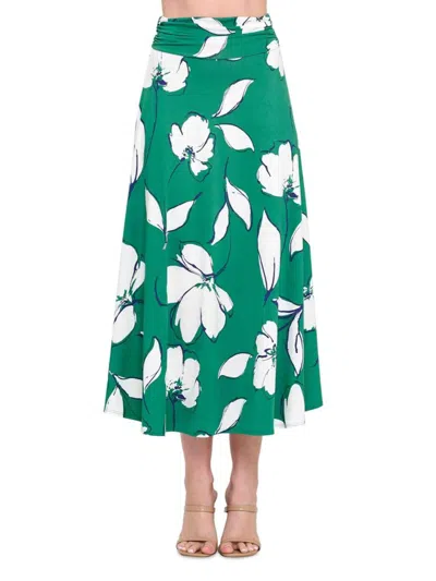 Women's Floral Knit Midi Skirt In Green Multicolor