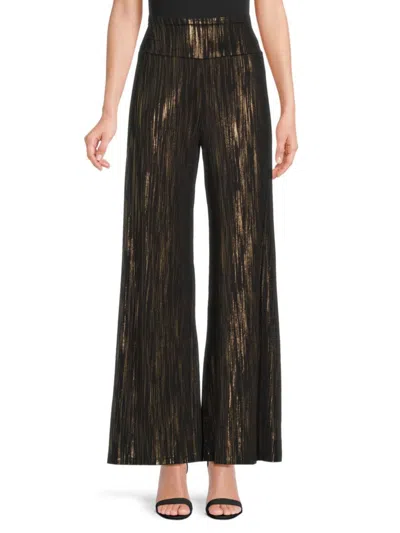 Women's Foil Print Wide Leg Pants In Ivory Gold