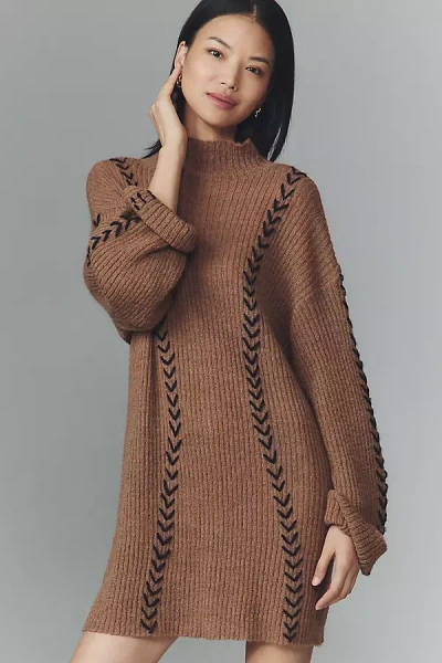 Long-sleeve Stitched Mini Sweater Dress In Brown
