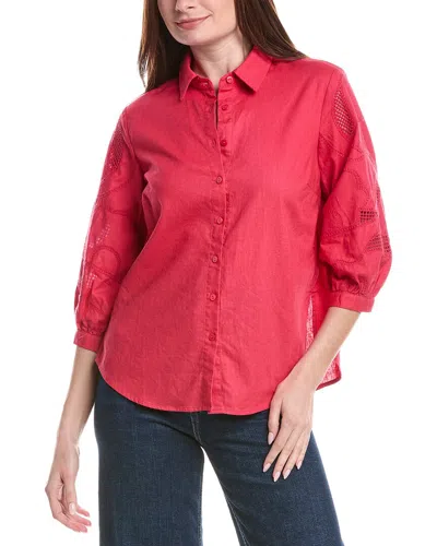 Woven Button Front Linen-blend Blouse In Red