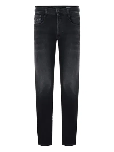 Mens Medium Grey Anbass Hyperflex Whiskering Slim-leg Regular-fit Stretch-denim Jeans