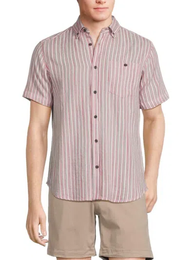 Men's Short Sleeve Striped Button Down Shirt In Red