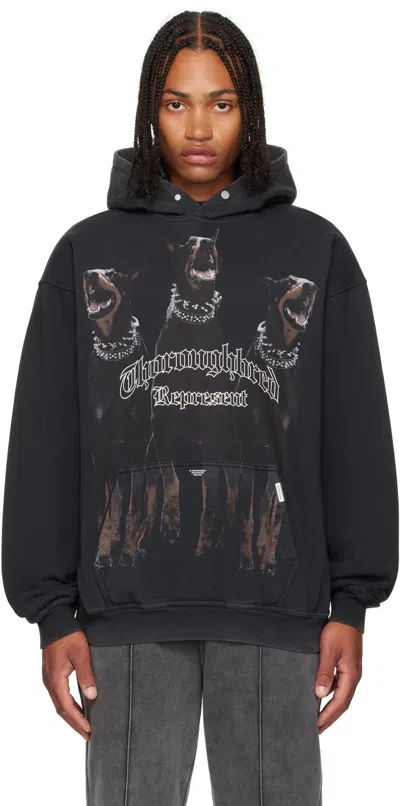 Vintage Black Hoodie With Doberman Graphic And Classic Features In Multi