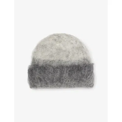 Mens Light Grey Ombre Brushed Stretch-wool Blend Beanie In Gray