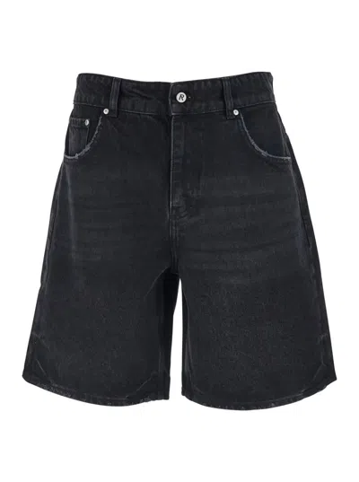 Black Shorts With R Logo Embossed On The Back In Denim Man