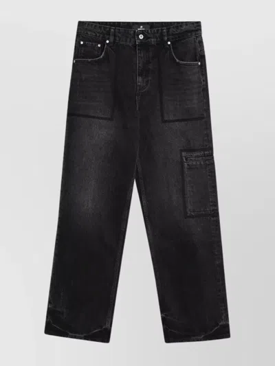 Straight Leg Trousers With Belt Loops And Pockets In Gray