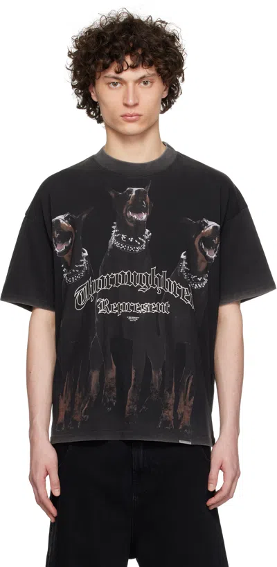 Thoroughbred Black T-shirt With Doberman Graphic Print And Logo Lettering On The Front In Cotton Man