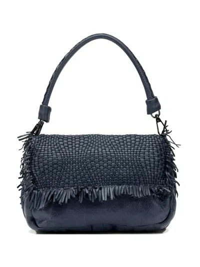 Anfora Woven Fringed Leather Shoulder Bag In Blue