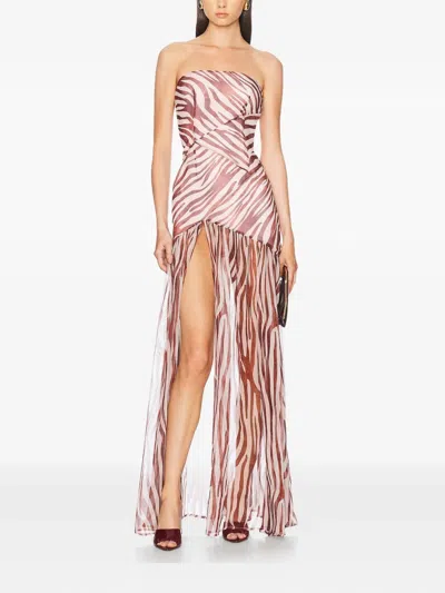 Nicole Strapless Zebra-print Silk-chiffon Maxi Dress In Pink