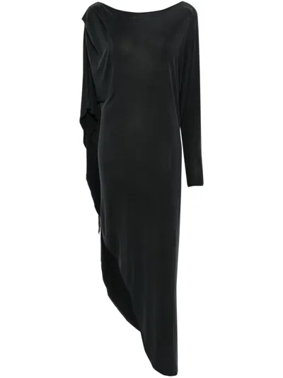 Azure Satin Long Dress With Asymmetric Cut In Green