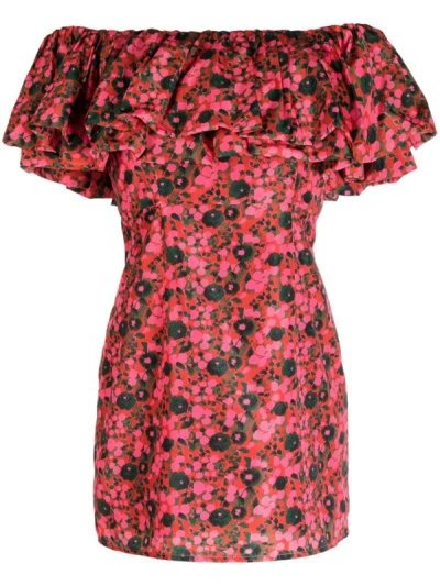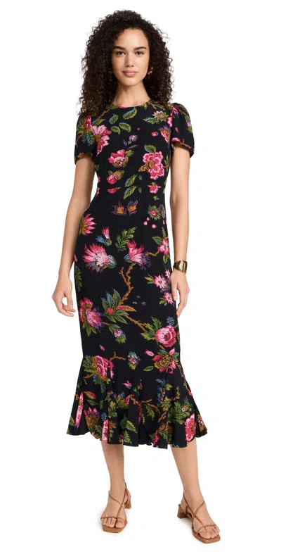 Adele Ruffled Printed Crepe Midi Dress In Multicolor