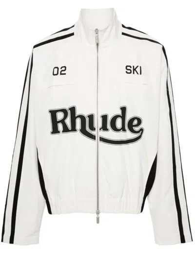 Chamonix Ski Souvenir Satin Bomber Jacket In Blue And White