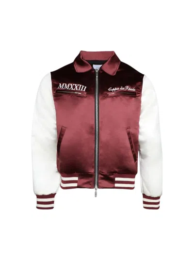 Chamonix Ski Souvenir Satin Bomber Jacket In Blue And White