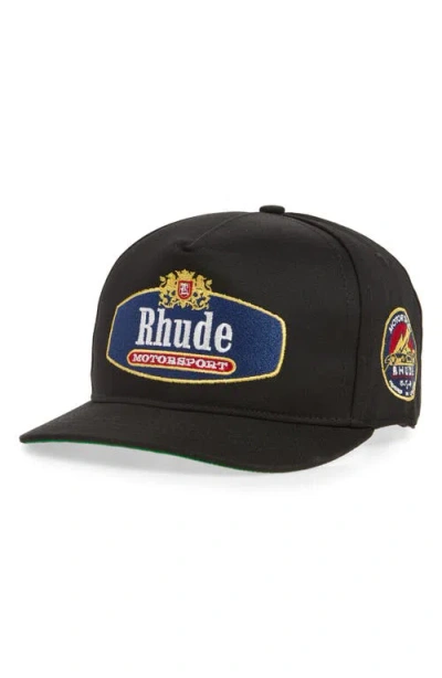 Racing Crest Embroidered Twill Baseball Cap In Black