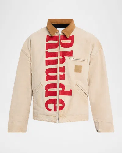Mens Oxford Indigo Logo Cord Collar Denim Jacket In Blue