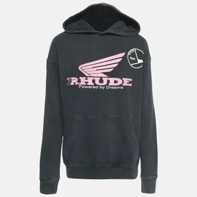 Pre-owned Dark Grey Knit Graphic Printed Hooded Sweatshirt S In Gray