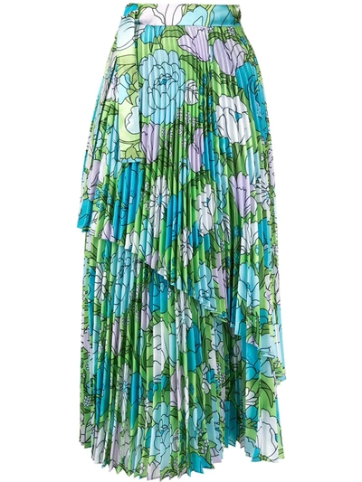 RICHARD QUINN FLORAL PLEATED SKIRT - 蓝色
