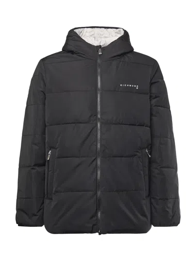 Reversible Down Jacket With Hood And Logo In Black