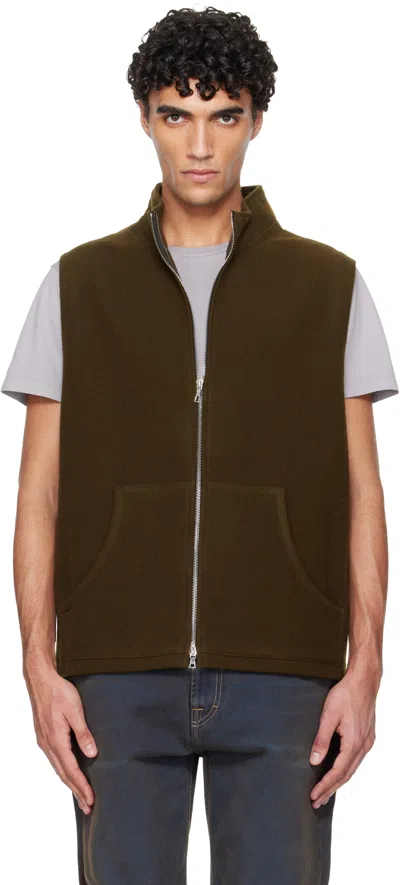 Khaki Fleece Full Zip Vest In Green