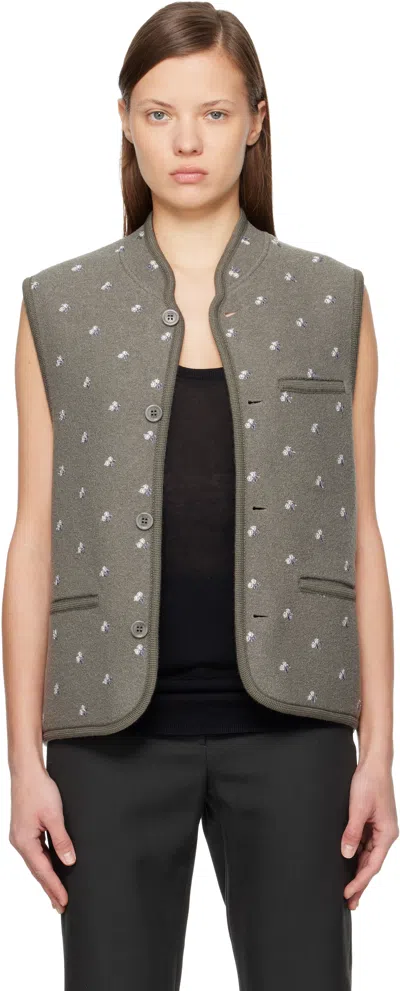 Tyrolean Gilet Wool Sleeveless Cardigan In Gray