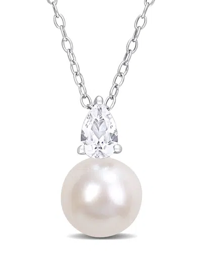 Silver 0.67 Ct. Tw. White Sapphire 8.5-9mm Pearl Pendant Necklace