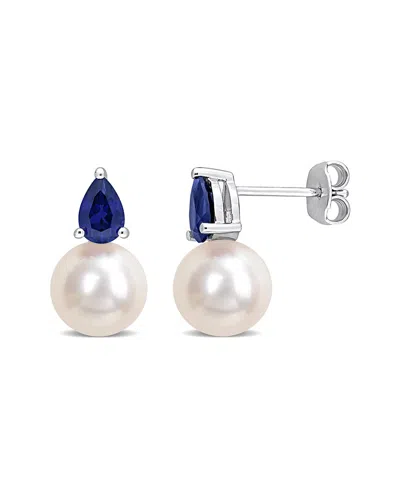 Silver 1.34 Ct. Tw. Blue Sapphire 8.5-9mm Pearl Studs
