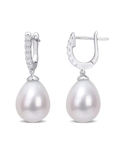 Silver 0.02 Ct. Tw. Diamond 8-8.5mm Pearl Drop Huggie Earrings
