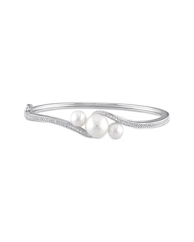 Silver 0.84 Ct. Tw. White Sapphire 6-6.5mm & 9-9.5mm Pearl Bangle