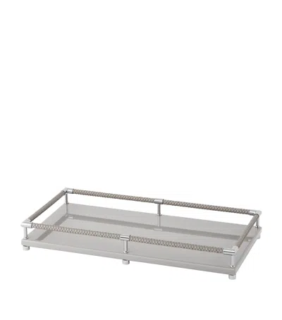 Leather-trim Lacquered Tray In Grey