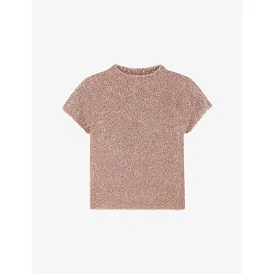 Womens Sparkle Round-neck Knitted T-shirt Bronze In Brown