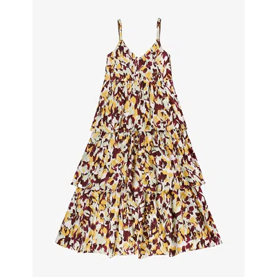 Womens Confetti-print V-neck Tiered Cotton Maxi Dress Pink In Multi