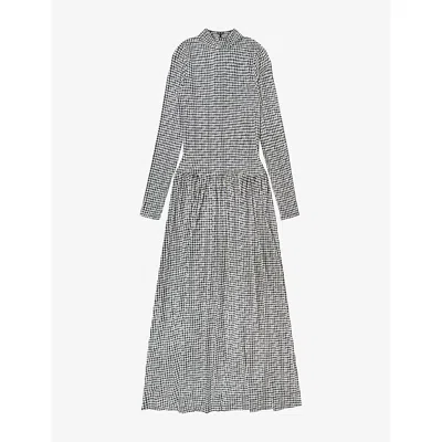 Womens Navy Checked Shirred-bodice Woven Maxi Dress In Multi