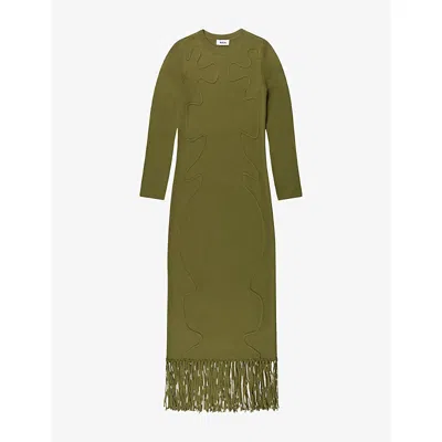Womens Khaki Appliquéd Knitted Midi Dress Xs In Green