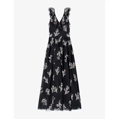 Womens Tallulah Embroidered Tulle Maxi Dress Mono In Black