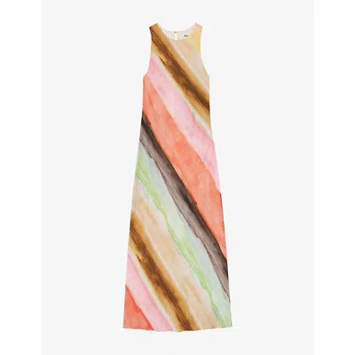 Womens Pink Phoebe Stripe Cowl-neck Satin Maxi Dress