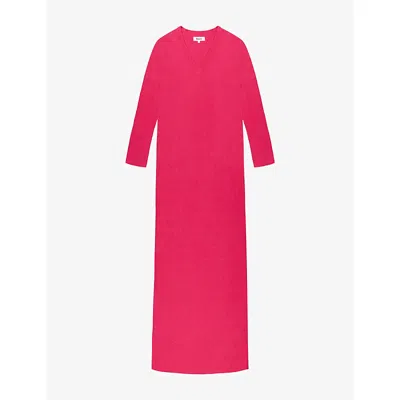 Womens Pink V-neck Knitted Cotton-blend Midaxi Jumper Dress
