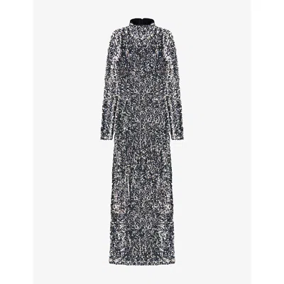 Womens Silver Astrid Long-sleeved Sequin-embellished Maxi Dress