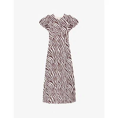 Womens Zebra-print Puff-sleeve Woven Midi Dress Brown In Multi