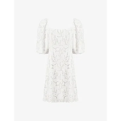 Womens Ivory Tie-waist Broderie-pattern Cotton Mini Dress In White