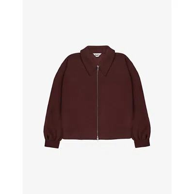 Womens Collared Relaxed-fit Cotton-blend Bomber Jacket Chocolate In Brown