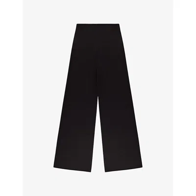 Womens Grey Pinstripe Wide-leg Stretch-woven Trousers In Black