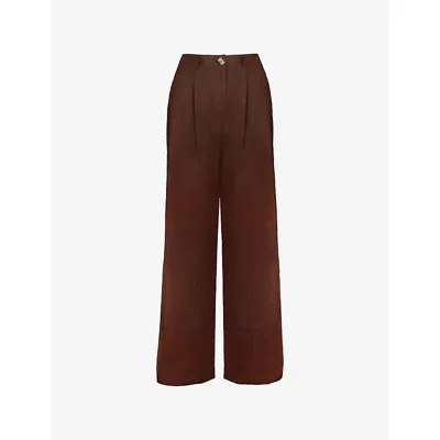 Womens Pleat-front Wide-leg Linen-blend Trousers Brown