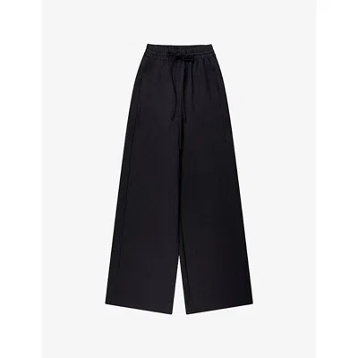 Womens Blue Striped Wide-leg Cotton-linen Trousers