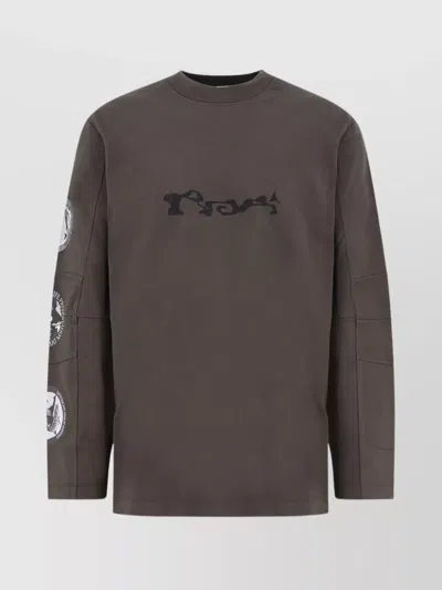 Crew-neck Cotton T-shirt Graphic Prints In Brown