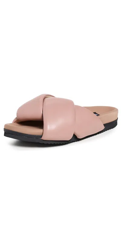 Women Foldy Puffy Sandals With Vegan Leather In Nude In Brown