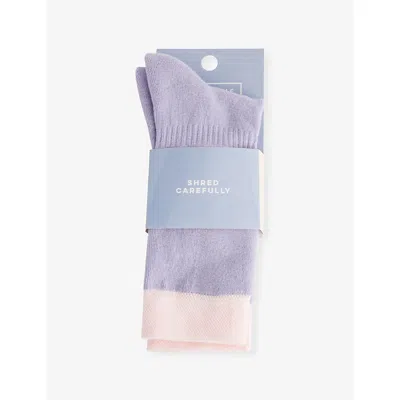 Kids' Purple Ankle-rise Stretch-cotton Blend Ski Socks 2-10